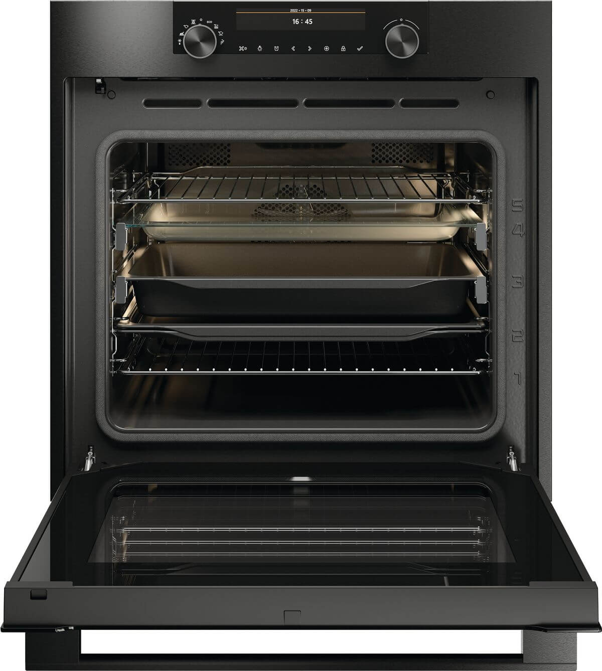 Marke: ASKO, Backofen Pyrolyse CRAFT, Breitennorm: 60 cm, Reinigung: AquaClean; Pyrolytisch, Display: 6-Zoll hinterleuchtetes TFT-Farbdisplay, Steuerung: 2 Drehknöpfe; intuitive Tasten- und Touchscreen-Navigation, Anzahl Funktionen: 16, Anzahl Programme: 82, Schrittweise kochen (3 Garmodi in der Reihenfolge verketten); Favoriten-Modus zum Speichern Ihrer 10 Lieblingsrezepte; Funktion Zeitverlängerung am Ende des Garvorgangs; Professioneller/manueller Modus; Automatik/Assistenzmodus; Verzögerter Start; Benutzerdefinierte Programme; 82 vorprogrammierte Rezepte, Schienen: Teleskopisch 2-Ebene, TĂĽrtyp: Gedämpfte Schliessung; InnentĂĽre Vollglas, Anzahl Backebenen: 5, Beleuchtung: Ja; Doppelte Halogenbeleuchtung, Höhe der verstellbaren FĂĽsse, Farbe: schwarz gebĂĽrsteter Black Steel-Edelstahl, Anzahl Gläser: 4, CoolDoor, Nutzinhalt Gesamt: 71 l, Energieeffizienzklasse: A+, Strom: 10 A, Leistung: 3’400 W, Anschluss: 400 V; 3LNPE