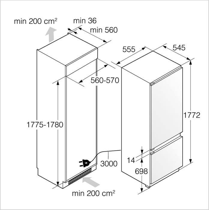 Marke: ASKO, Kühl-Gefrierkombination Einbau ASKO PREMIUM, No Frost, Stand/Einbau: Einbaugerät, Türtyp: Festtür-Montage; SoftSystem, Einbauart: Vollintegriert, Türanschlag: Rechts wechselbar, Klimaklasse: SN-ST, Breitennorm: 60 cm, Nischenhöhe: EURO 1780 mm, Jahresverbrauch Energie: 224 kWh, Geräuschwert: 39 dB(A) re 1 pW, Geräuschemissionsklasse: C, Steuerung: elektronische Steuerung; hinter der Tür, Display: graphisch, Anzahl Klimazonen: 2, Umluft, Gefrierleistung: 3 kg/24h, Ice Maker: Nein, Fastfreeze: zeitgesteuert, Nutzinhalt Gesamt: 248 l, Nutzinhalt Kühlen: 180 l, Nutzinhalt Gefrieren: 68 l, Beleuchtung: Ja; LED-Deckenbeleuchtung
