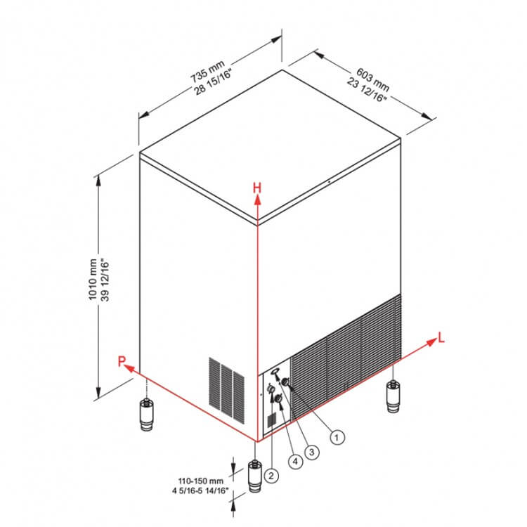 • Stellfüsse: 110 – 150 mm