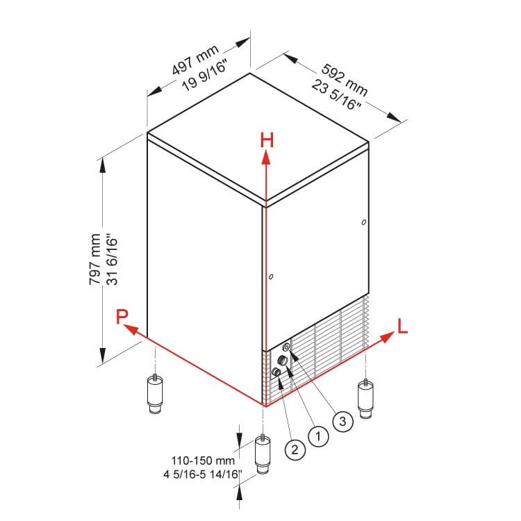 • Stellfüsse: 110 – 150 mm