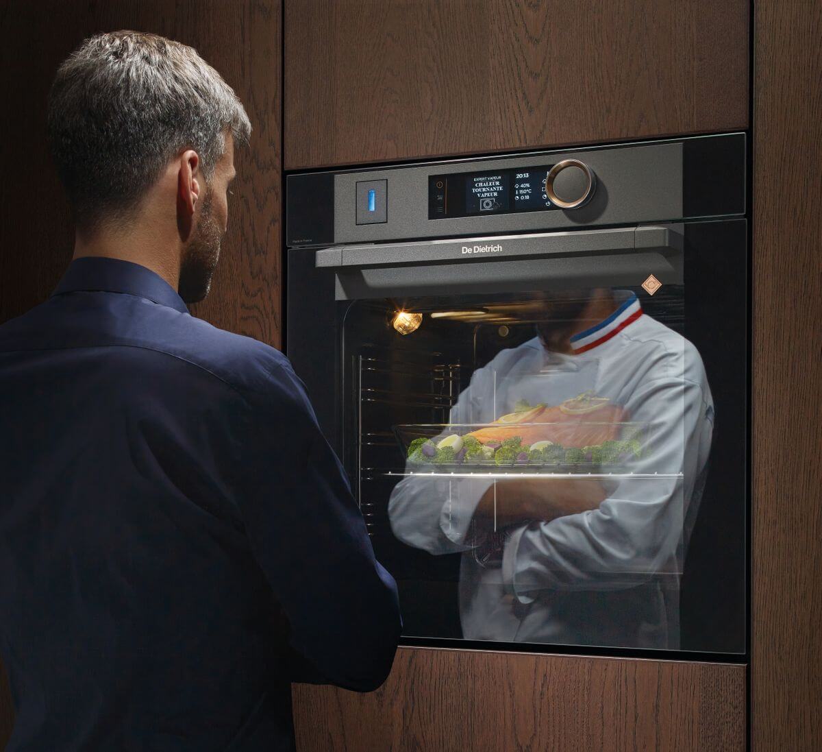 Marke: DE DIETRICH, Combi Steamer, Breitennorm: 60 cm, Reinigung: automatisch; express; normal; Pyrolytisch, Display: Farbdisplay, Steuerung: Turn & Press Knopf, Anzahl Funktionen: 14, 2 Kocharten: Traditionell, Kombination mit Dampf (20 – 100%); Niedergaren (10 Gerichte), 73 Rezepte; 14 Garfunktionen, darunter Brot-Funktion; Regenerieren: Aufwärmen wie frisch zubereitet., Schienen: Teleskopisch 1-Ebene, TĂĽrtyp: Komplett abnehmbares Glas; Soft-Close, Anzahl Backebenen: 6, Dampferzeuger, Beleuchtung, Farbe: Edelstahl, Anzahl Gläser: 4, CoolDoor, Nutzinhalt Gesamt: 73 l, Energieeffizienzklasse: A+, Strom: 10 A, Leistung: 3’135 W, Anschluss: 400 V; 2 PN