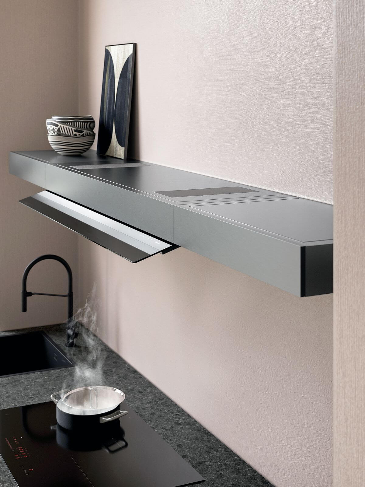 Marke: FALMEC, Dunstabzugshaube Wand, Einbauart: Wandhauben, Umluft, Breitennorm: 120 cm, Farbe: Schwarz, Beleuchtung: Ja; Dynamic Led Light (2700 – 5600 K), Steuerung: elektronische Touch Tasten, Luftmenge (Förderleistung): 500 mÂł/h, Induktionsmotor, Anzahl Geschwindigkeiten: 4, Strom: 10 A, Anschluss: 230 V, Leistung: 220 W, Abluftstutzen Anschluss: ø 150